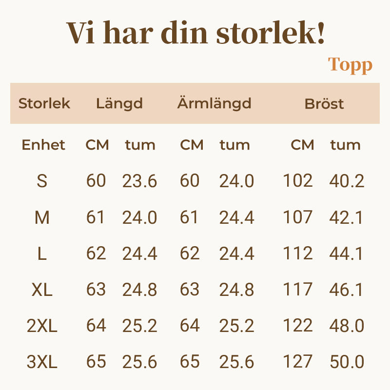 | Größe | Länge (cm) | Ärmellänge (cm) | Brust (cm) |