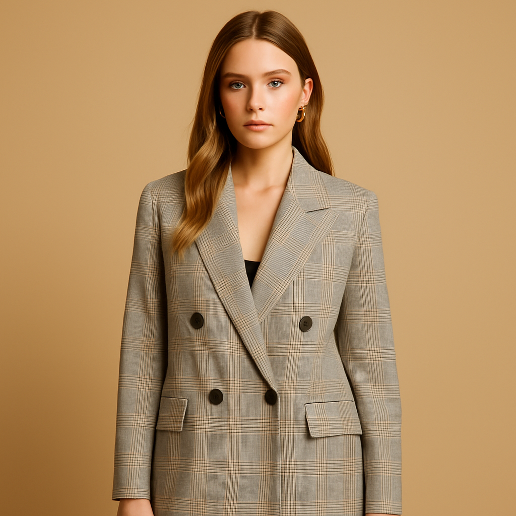 Übergroßer, karierter, doppelreihiger Blazer - Gedecktes Karo